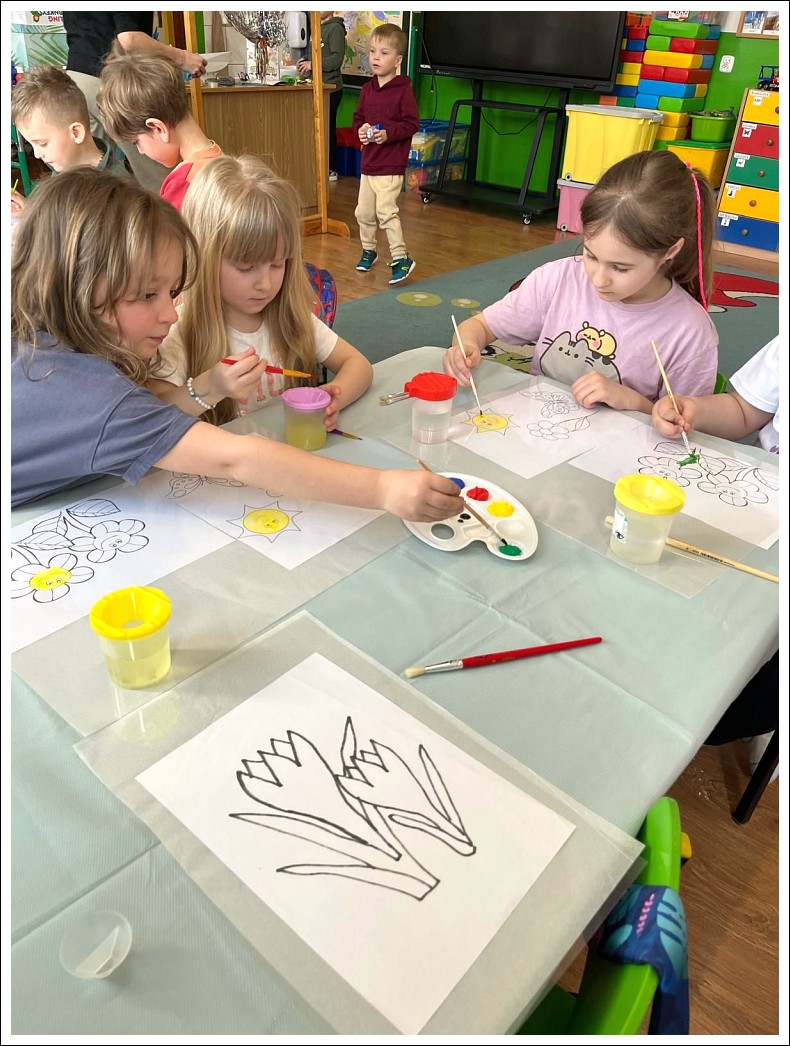 Pierwszy dzień wiosny w klasach 1–3 był wyjątkowym i pełnym radości wydarzeniem, które na długo pozostanie w naszej pamięci. Tego dnia uczniowie z wielkim entuzjazmem wzięli udział w barwnym przemarszu okolicami szkoły, niosąc ze sobą Marzannę – symbol odchodzącej zimy. Wesołe śpiewy i uśmiechy towarzyszyły nam przez całą drogę, wprowadzając prawdziwie wiosenną atmosferę. Następnie udaliśmy się nad rzekę, gdzie zgodnie z tradycją pożegnaliśmy Panią Zimę, symbolicznie „odganiając” chłód i witając cieplejsze, słoneczne dni. Po tym wyjątkowym momencie ruszyliśmy dalej, aby każdy mieszkaniec okolicy mógł zobaczyć to radosne i kolorowe wydarzenie. Po powrocie do szkoły uczniowie z równie wielkim zaangażowaniem przystąpili do wiosennych prac kulinarnych. W klasach powstawały przepiękne, kolorowe szaszłyki owocowe, zdrowe i apetyczne kanapki oraz pyszne sałatki owocowe. Kreatywność dzieci nie miała granic, a efekty ich pracy zachwycały nie tylko wyglądem, ale i smakiem. To był dzień pełen uśmiechu, wspólnej zabawy i integracji, który wprowadził nas wszystkich w cudowny, wiosenny nastrój.